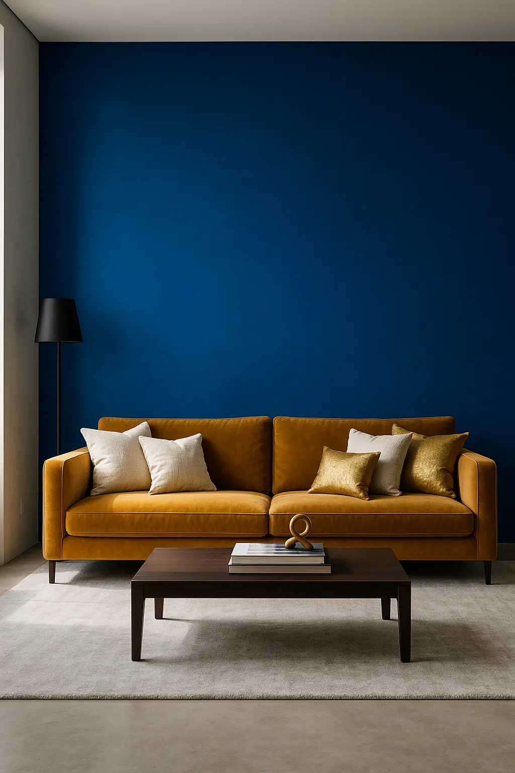 Associé au velours et aux métaux dorés (laiton, or mat), le bleu électrique sublime un canapé ou un mur. Des miroirs à cadre doré et des sols en chêne blanchi adoucissent l’ensemble. Un mur en béton ciré clair et des accents neutres (blanc, gris pâle) équilibrent sa puissance.