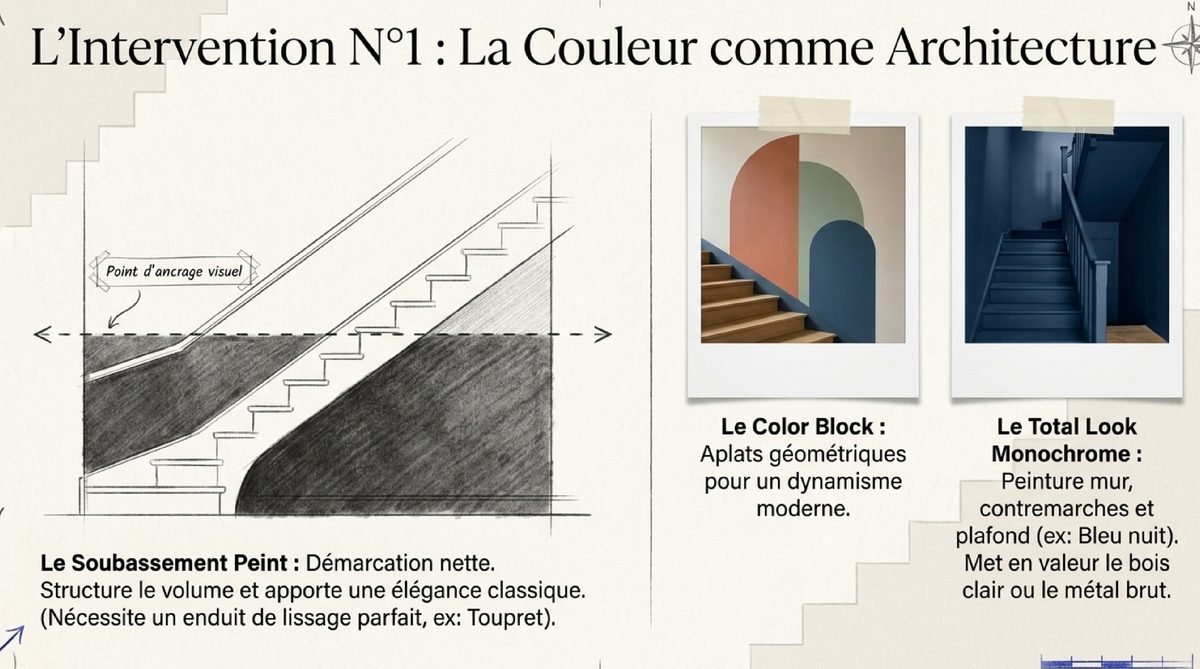 La couleur comme signature : Osez la peinture pour une montée d’escalier pleine de caractère