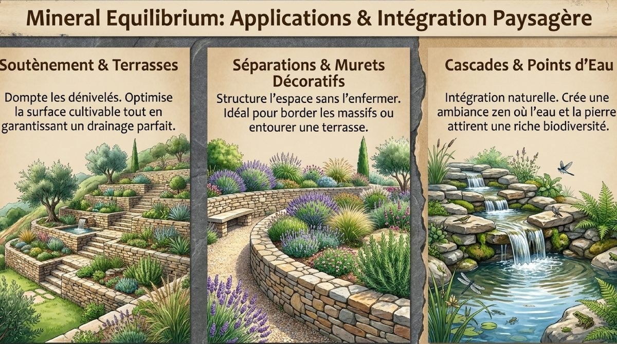 Le mur en pierre sèche ne se cantonne plus aux jardins rustiques, et c’est ce qui me fascine ! Il s’invite désormais dans les espaces contemporains où il apporte texture et authenticité[web:8]. Associé à des végétaux graphiques, du mobilier design ou des éclairages modernes, il crée un contraste saisissant qui sublime les deux styles.Les paysagistes innovants exploitent les possibilités infinies offertes par cette technique : murs courbes, structures en escalier, bancs intégrés ou jardinières en pierres empilées. La pierre sèche devient ainsi un élément sculptural qui façonne le paysage avec élégance. Pour plus d’inspiration sur les styles contemporains, explorez mes idées de décoration moderne.Mes Conseils Pratiques pour Réussir Votre Projet