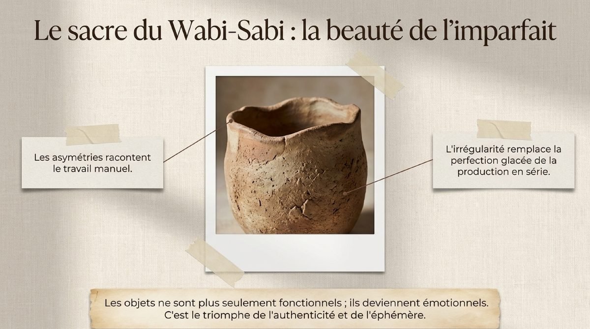 • 🏺 Le sacre du wabi-sabi : Terre cuite, grès brut et céramiques imparfaites prennent le pouvoir.