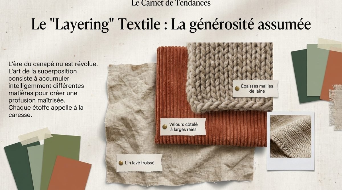 • 🧶 Le layering textile : L’art de superposer lin, velours et coton pour un confort majestueux.